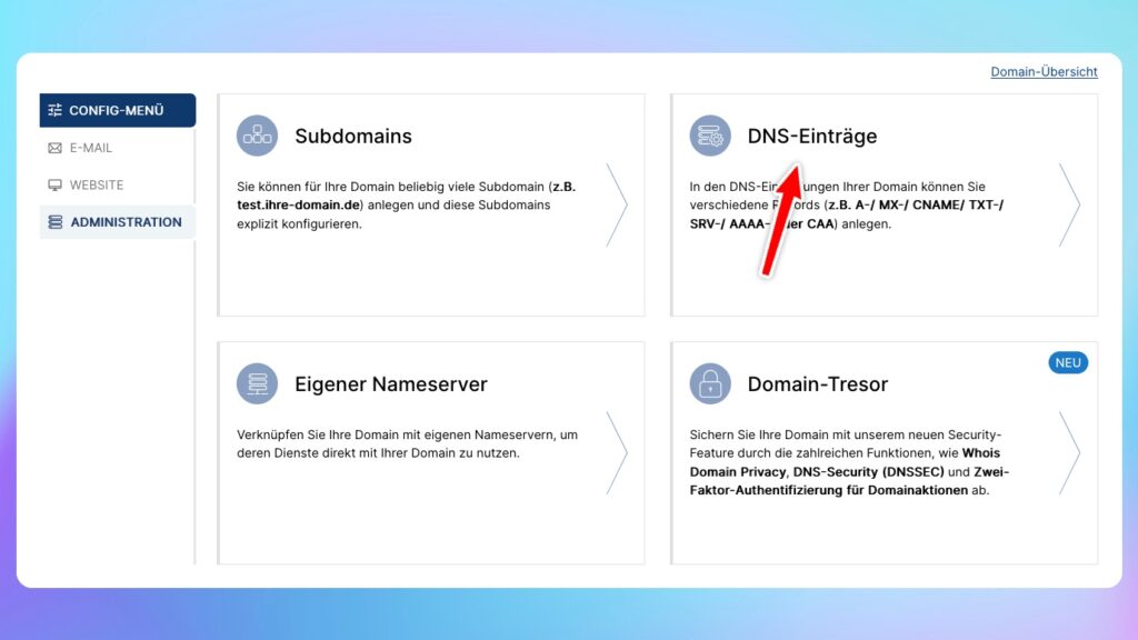 Bei United Domains klickt ihr anschließend auf den Punkt “DNS Einträge”.