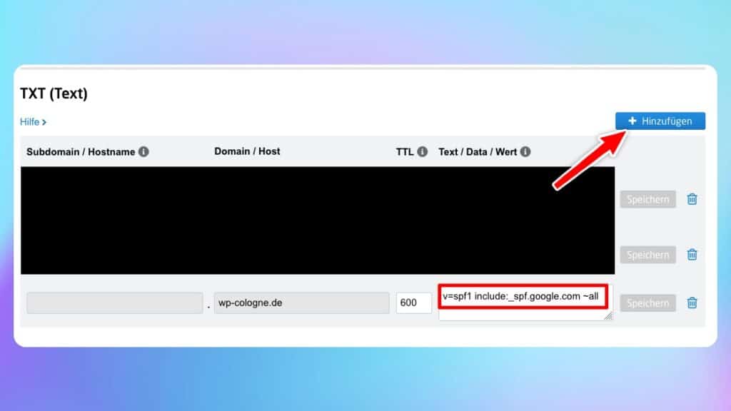 Anschließend speichert ihr den Eintrag. Über spf-record.de könnt ihr prüfen, ob die Einstellungen nun korrekt hinterlegt sind. Achtet hier, dass einige Zeit (manchmal bis zu einigen Stunden) vergehen kann, ehe die DNS Einstellungen auch tatsächlich übernommen wurden.